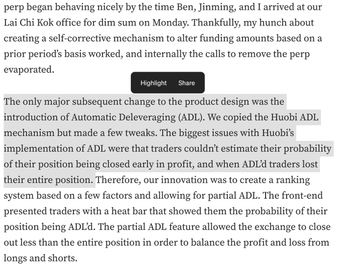 “We copied the Huobi ADL mechanism but made a few tweaks.” (我们照搬了火币的ADL机制,只是做了一些小调整。)