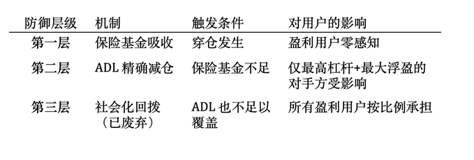 但 ADL 不是也不应该是损失分配的第一顺位机制。ADL 的本质是在极端情况下”强制平掉赚钱的人的仓位”——这对一个长期持有盈利头寸的交易者来说,仍然是一种不请自来的干预。一个健康的风控体系,应该在 ADL 被触发之前,先有一道吸收损失的缓冲垫。